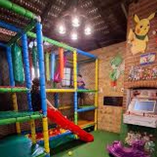 Estrutura com espaço kids que permite às crianças brincar com segurança.