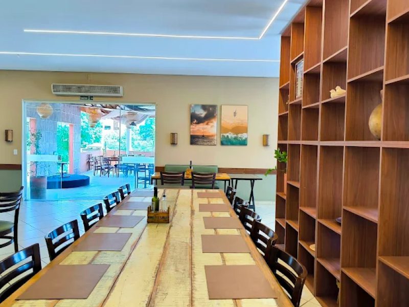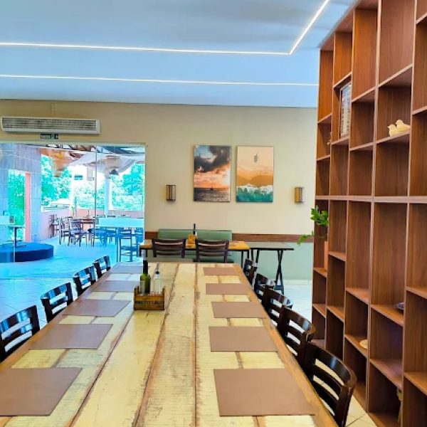 O restaurante possui espaço Kids gratuito, com brinquedão e área infantil, mediante cadastro prévio, tornando o local mais seguro e divertido para os pequenos. O salão é climatizado, há área externa (deck) para quem prefere aproveitar o ar livre, mesas confortáveis e espaço amplo. Tudo isso em um ambiente familiar, acolhedor, propício para momentos descontraídos com crianças.